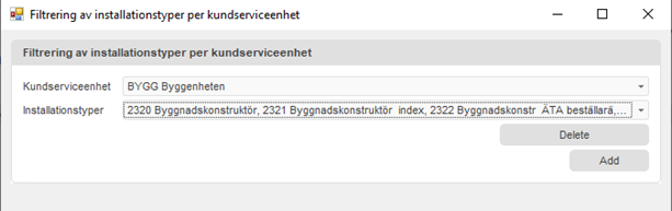 Nu finns en inställning där man kan styra vilka installationstyper som kan användas på en arbetsorder per kundservicenhet.